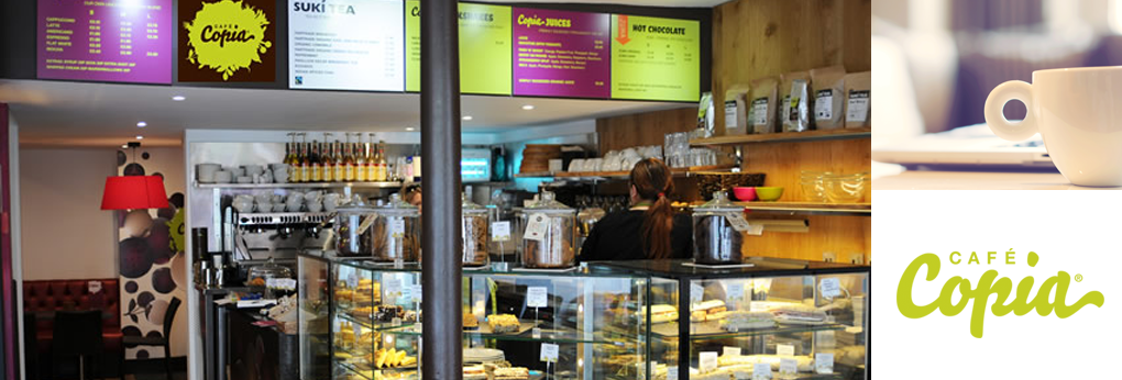 We own Cafe Copia. Cafe Copia is an independent cafe chain in the U.K, currently operating in Marlow, Bucks and Kensington David Lloyd in London.